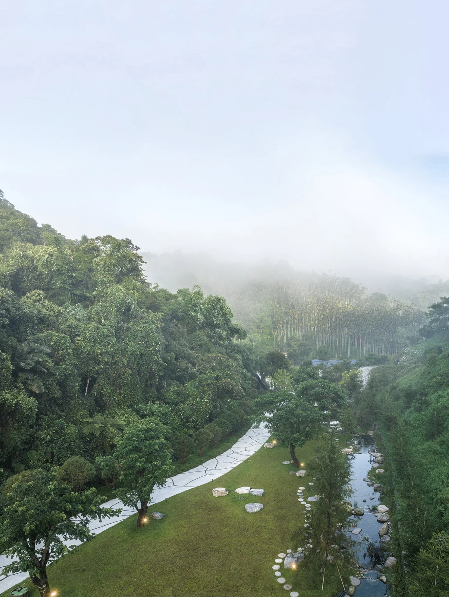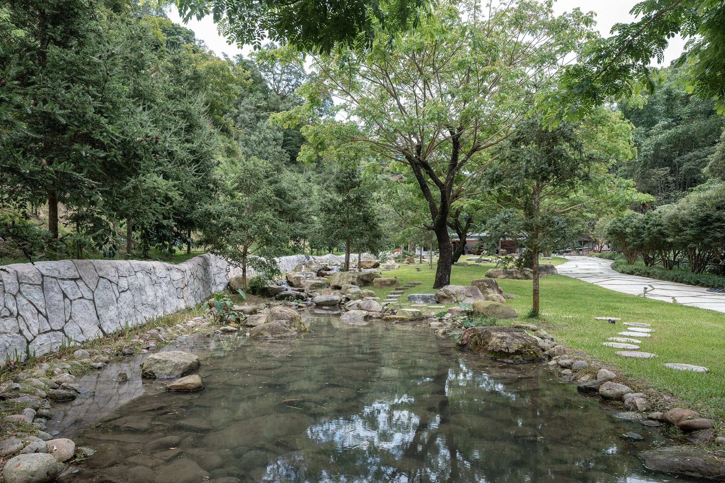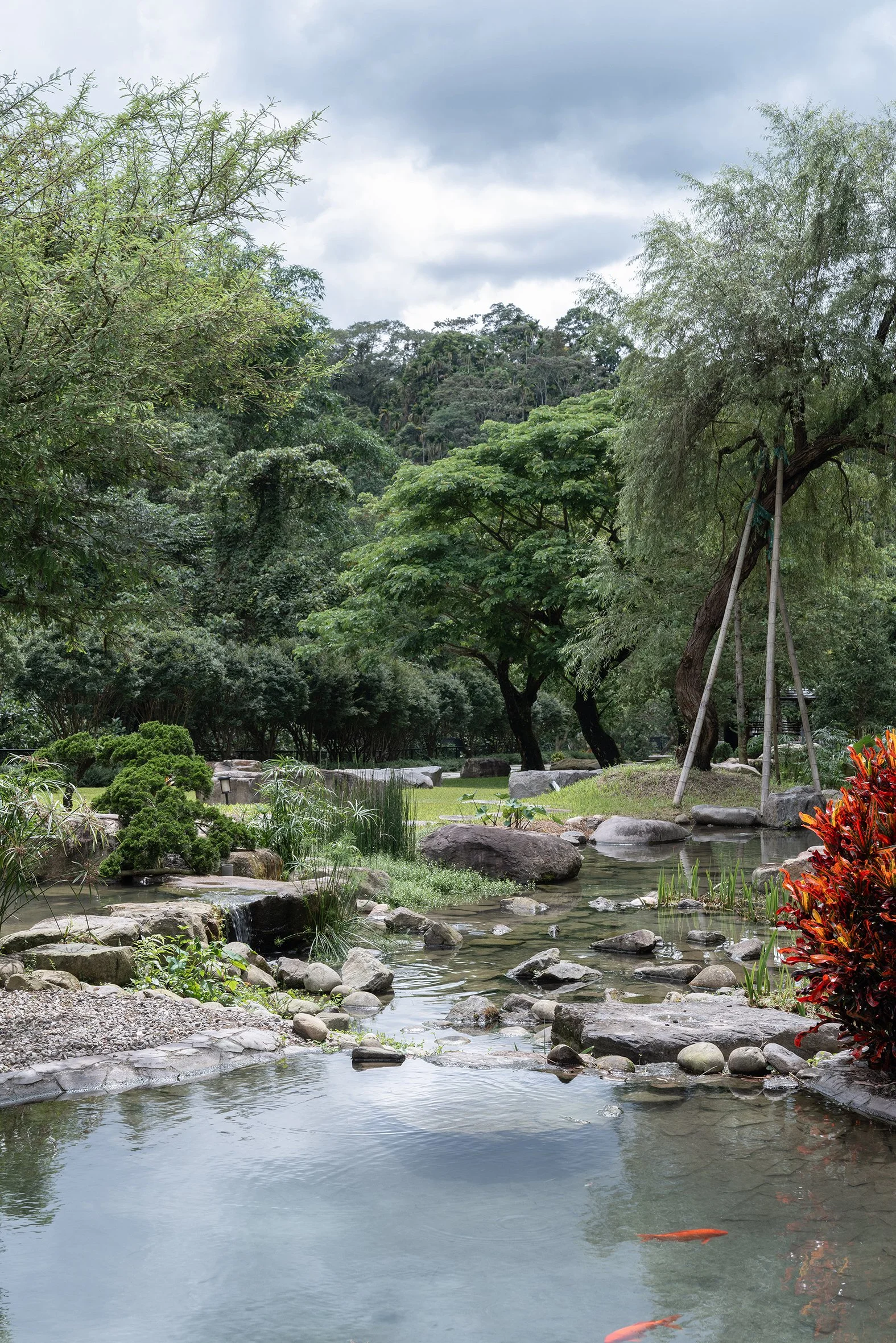 The landscape design draws inspiration from Kyoto’s gardens. With meticulous attention to detail, the garden features an 85m long creek with cascading water, lotus ponds and koi ponds, artfully sculpted rock formations, meandering pathways underneath majestic trees, and carefully curated plantings of bamboo groves, ferns and shrubbery. The garden evokes a sense of tranquility and contemplation, inviting visitors to pause and immerse themselves in the beauty of their surroundings. Through careful curation, the expansive landscape unfolds into pockets of delightful discovery, where moments of awe-inspiring grandeur seamlessly blend with moments of serene intimacy.