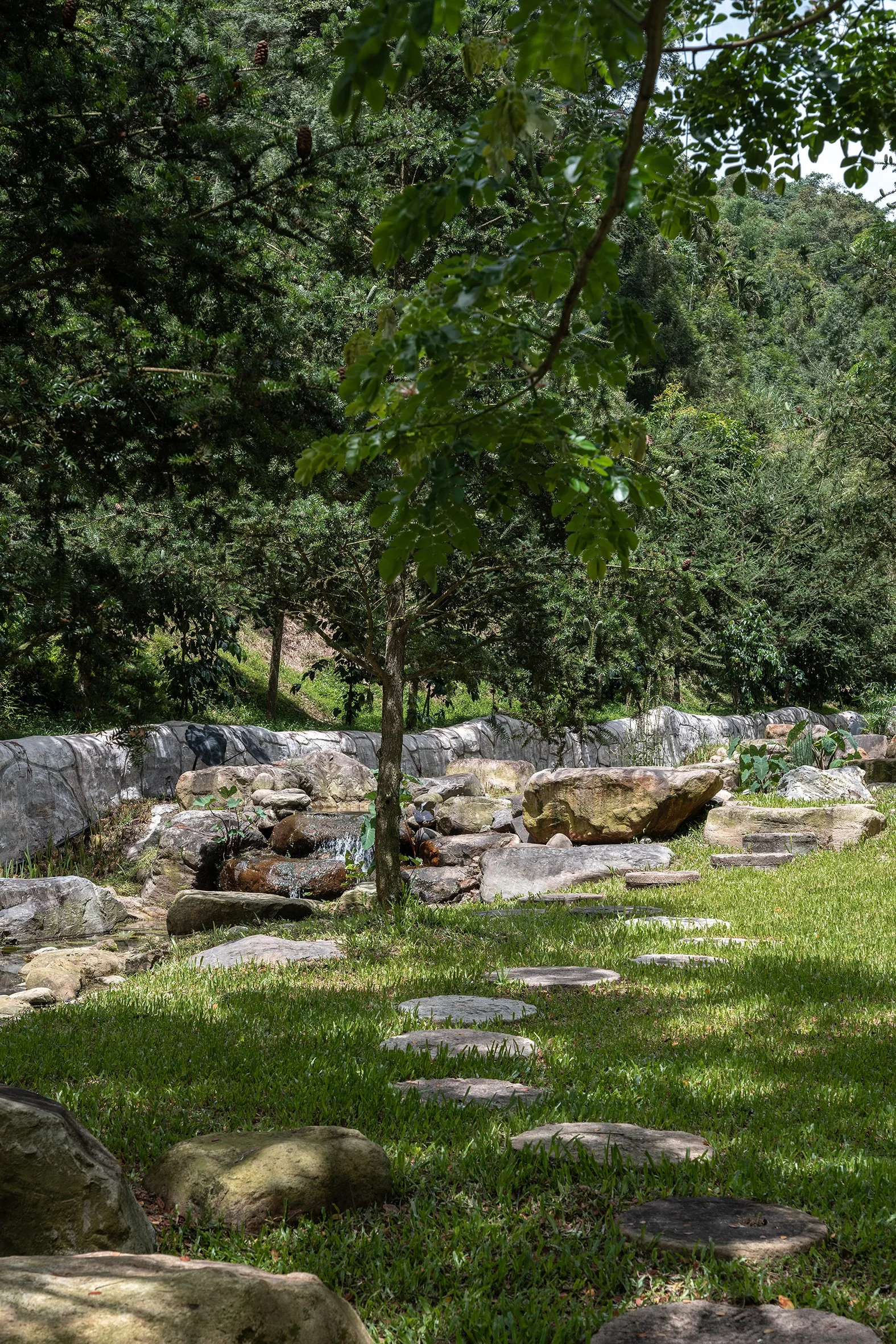 This project transforms a deforested site into a thriving, ecologically rich landscape. By transplanting over 500 trees, including mature native species for carbon sequestration, saplings for erosion control, and coffee and fruit trees for nourishment, we enhance biodiversity while supporting environmental health. The abundant water on the land allowed us to drill two wells, tapping into free-flowing groundwater to sustain an 85-meter-long creek. Integrated into the natural terrain and connected to surrounding waterways, the creek strengthens the ecosystem, restores habitats, and fosters water conservation. This thoughtful restoration not only nurtures the land’s ecological vitality and aesthetic beauty but also enriches the experience of the land for generations to come.