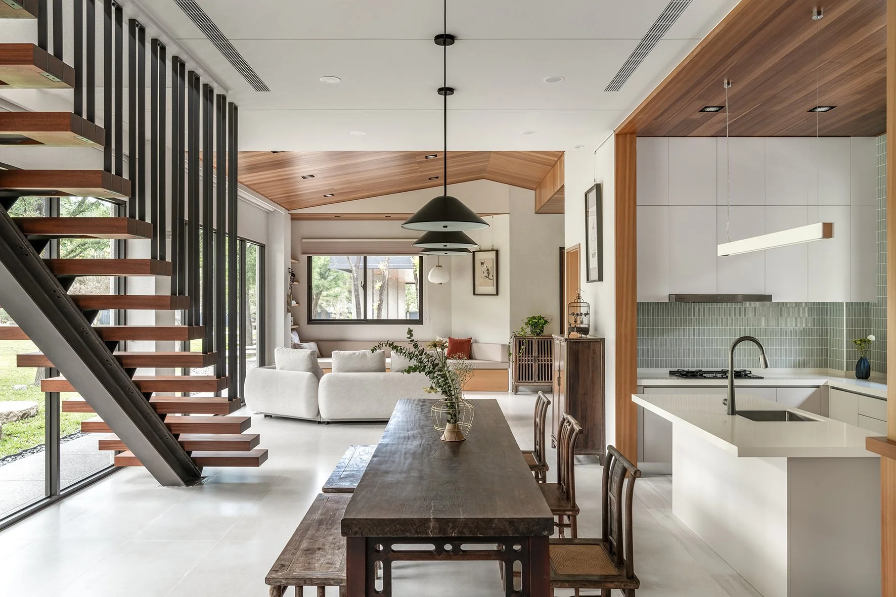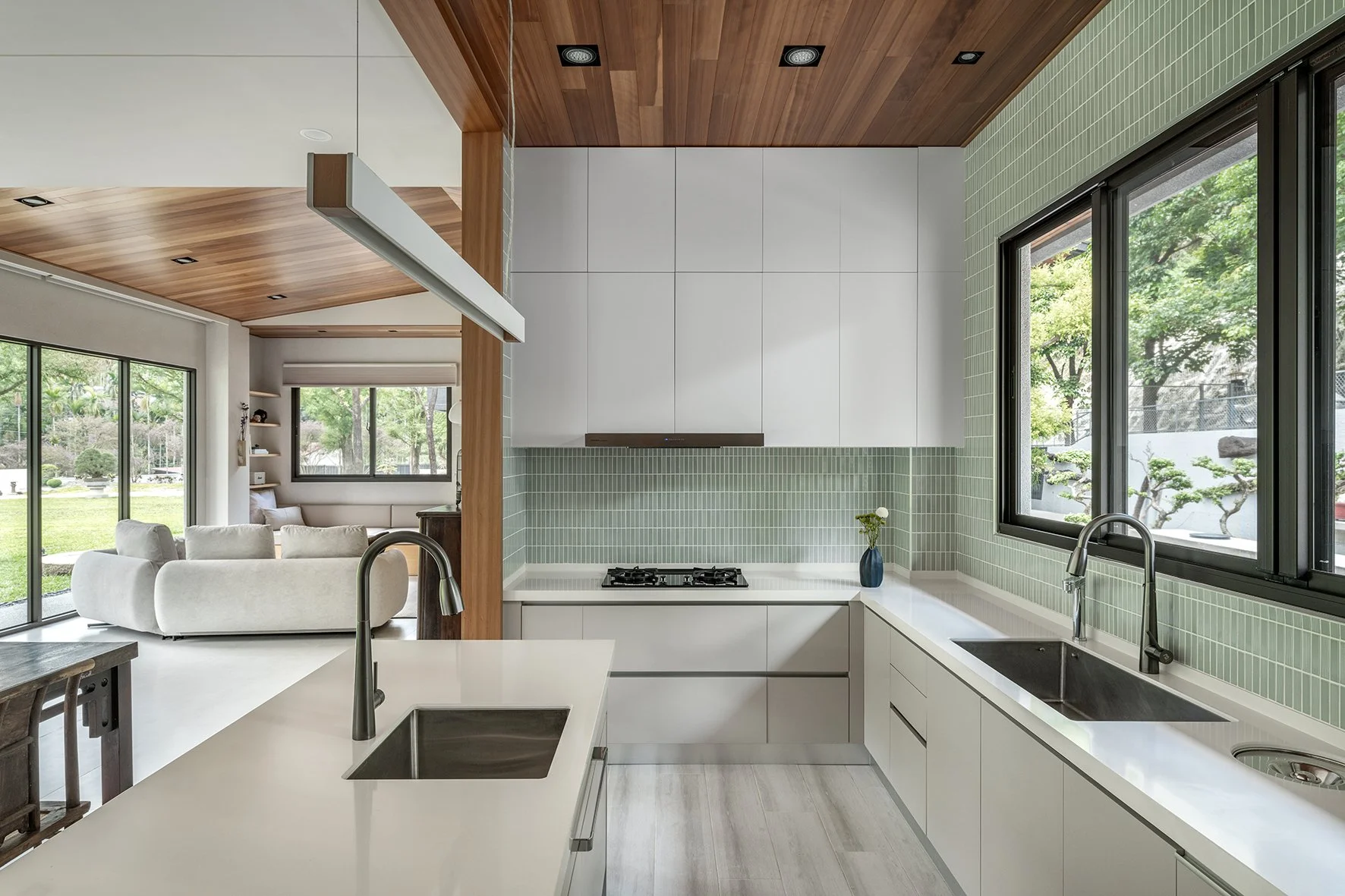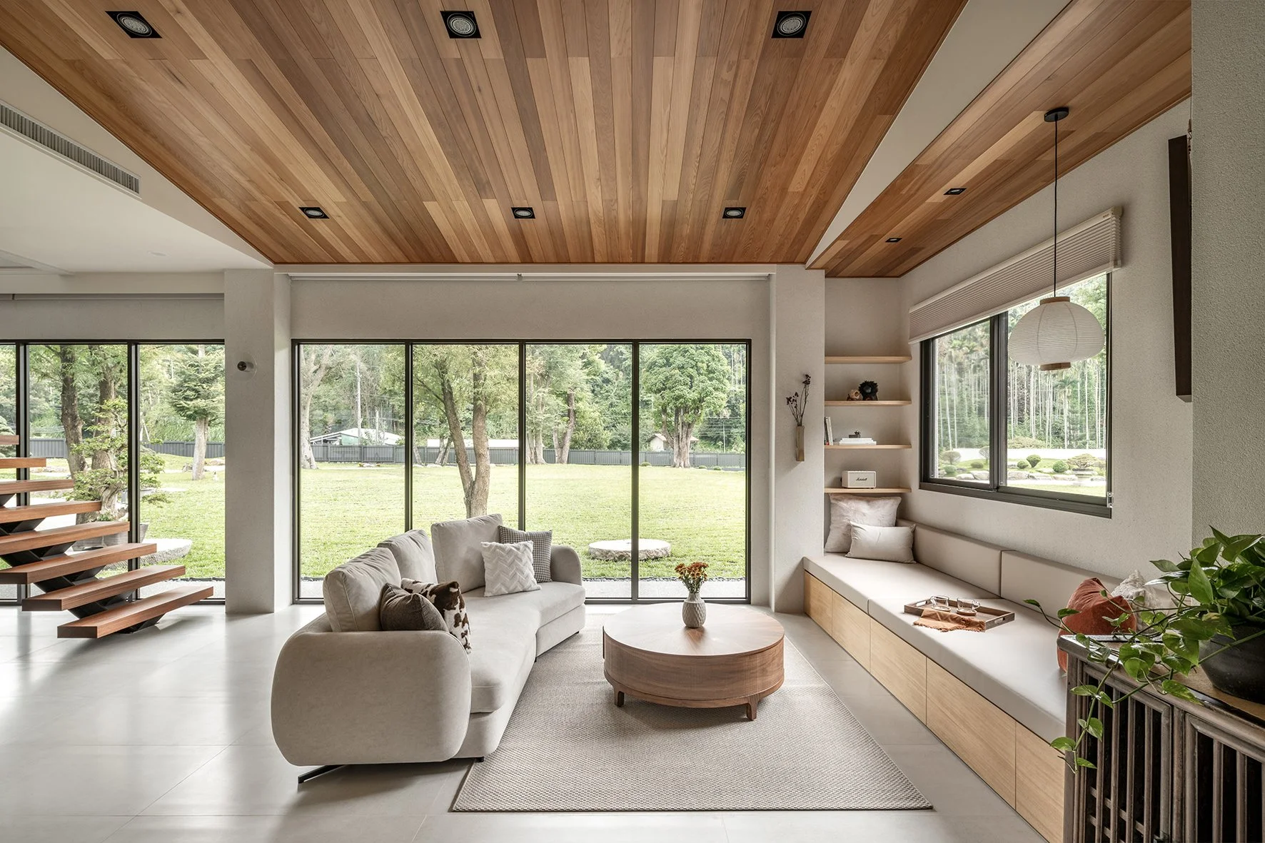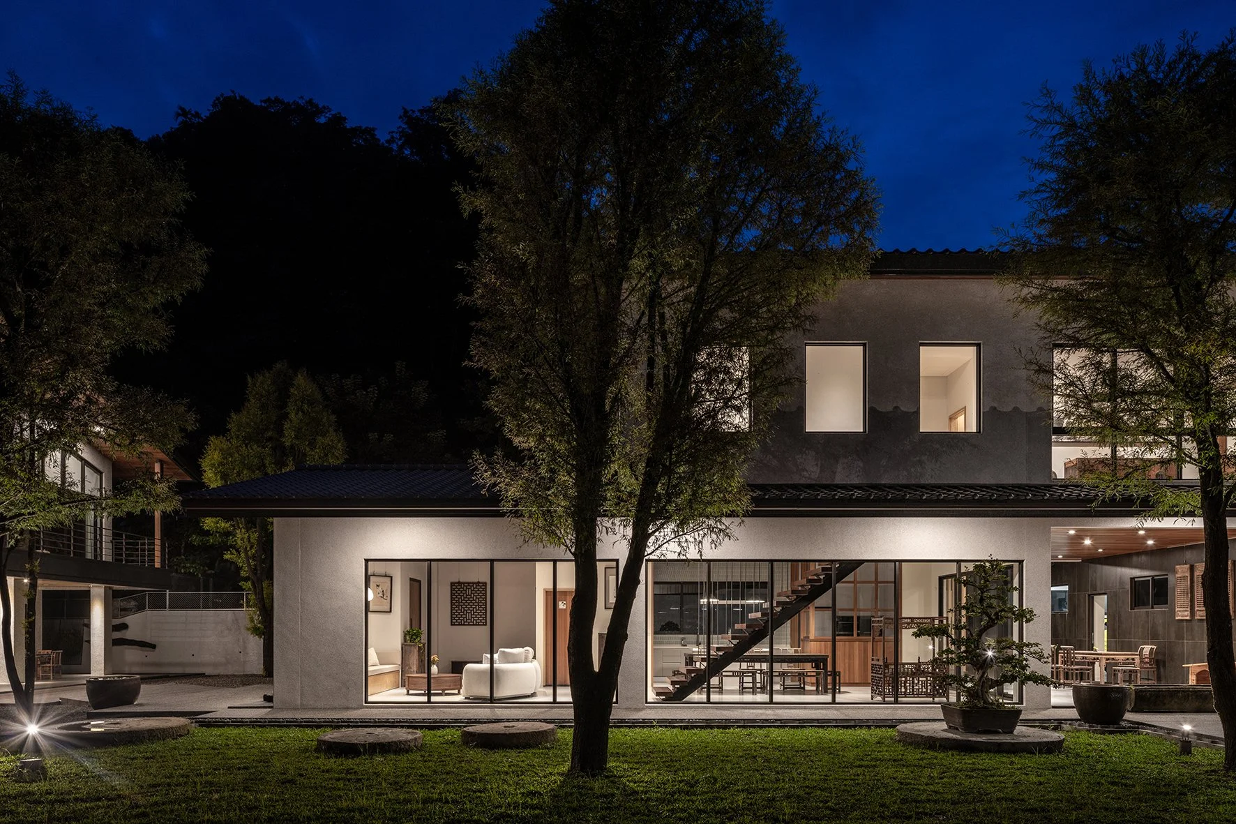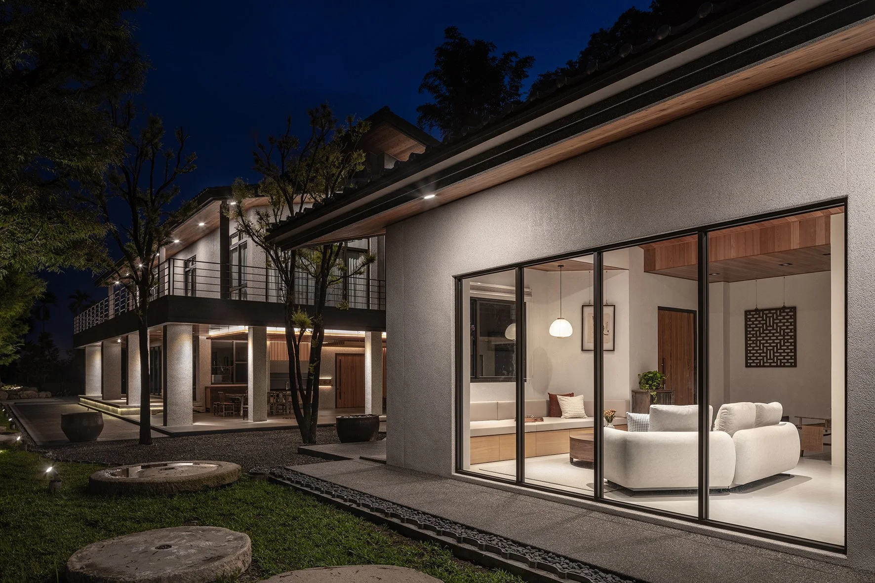 As a new prototype for Taiwanese country houses, the design deeply integrates the natural environment into the fabric of the home. Prioritizing landscaping from the project's inception, trees were planted well ahead of construction, laying the groundwork for a lush and mature environment. Instead of isolating the built environment from nature, the houses are oriented to embrace the garden. Architectural volumes are interspersed with outdoor space, and semi-outdoor spaces act as extensions of the living area, blurring the boundaries between indoor and outdoor and offering a more open, dynamic and environmentally attuned living experience.