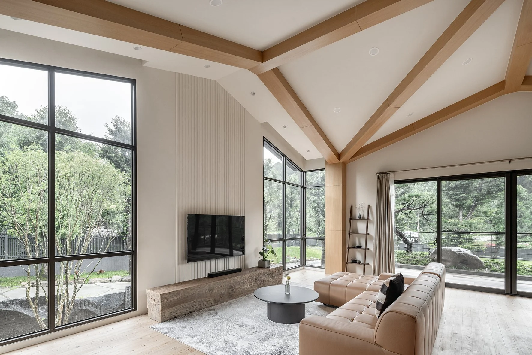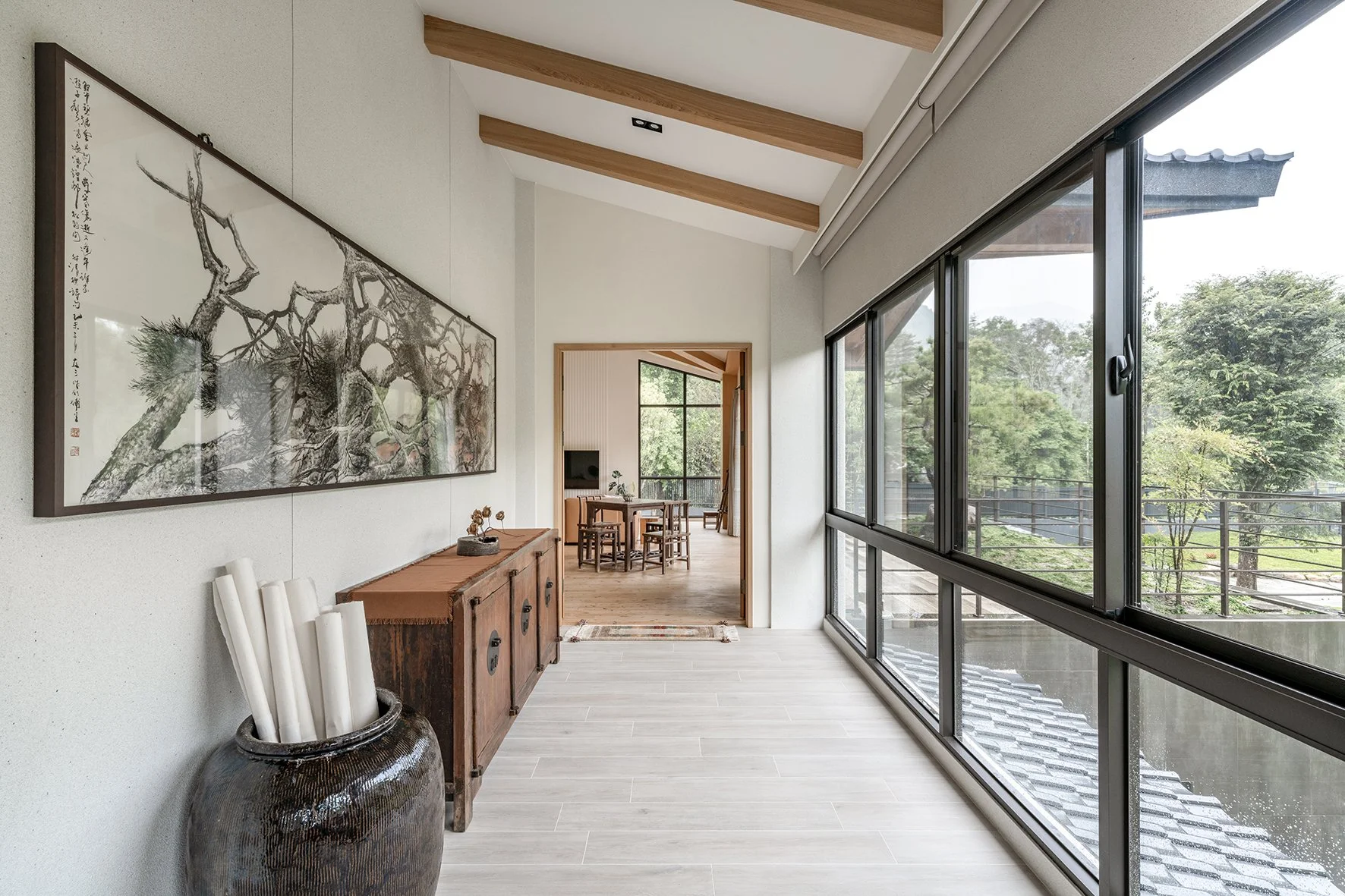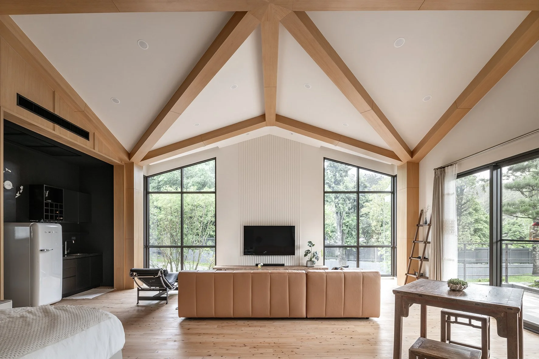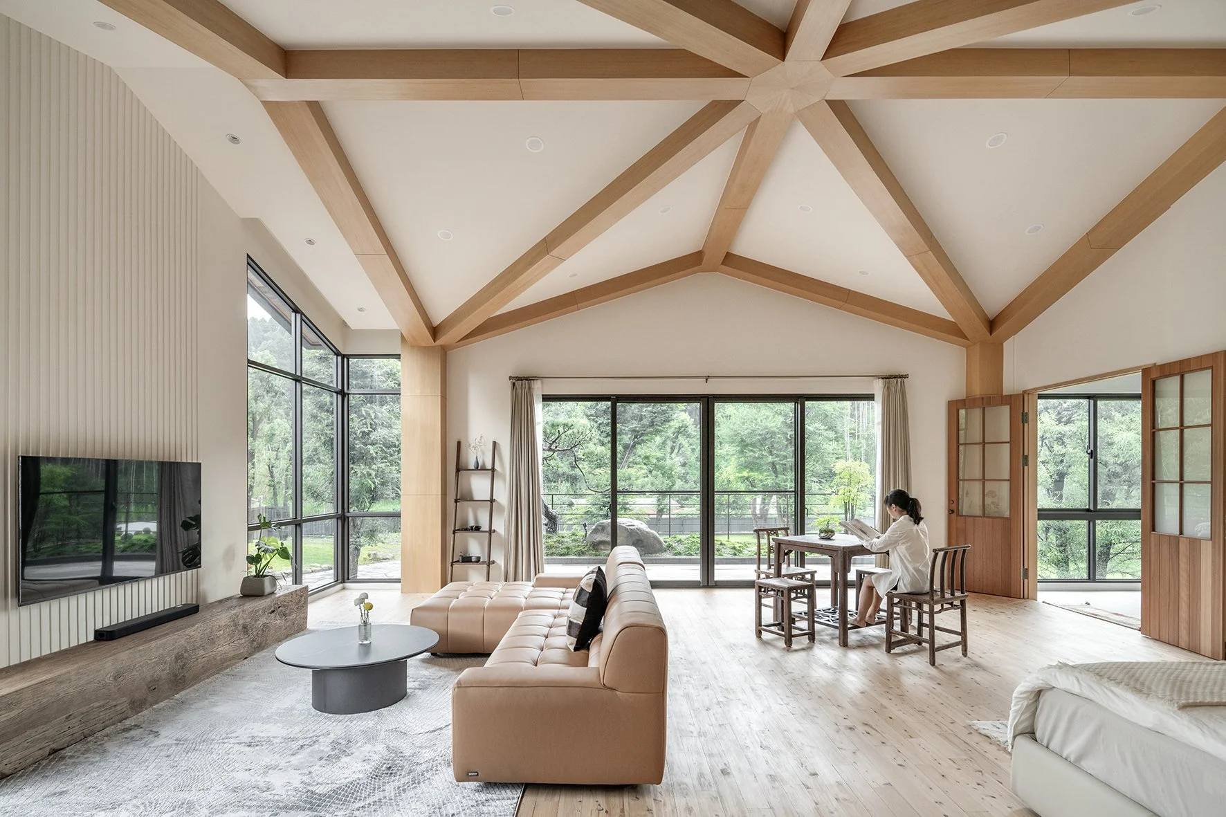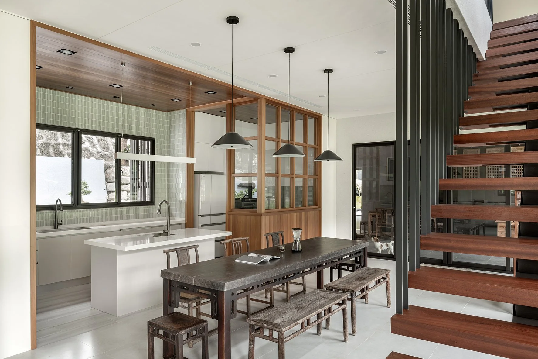 As a new prototype for Taiwanese country houses, the design deeply integrates the natural environment into the fabric of the home. Prioritizing landscaping from the project's inception, trees were planted well ahead of construction, laying the groundwork for a lush and mature environment. Instead of isolating the built environment from nature, the houses are oriented to embrace the garden. Architectural volumes are interspersed with outdoor space, and semi-outdoor spaces act as extensions of the living area, blurring the boundaries between indoor and outdoor and offering a more open, dynamic and environmentally attuned living experience.
